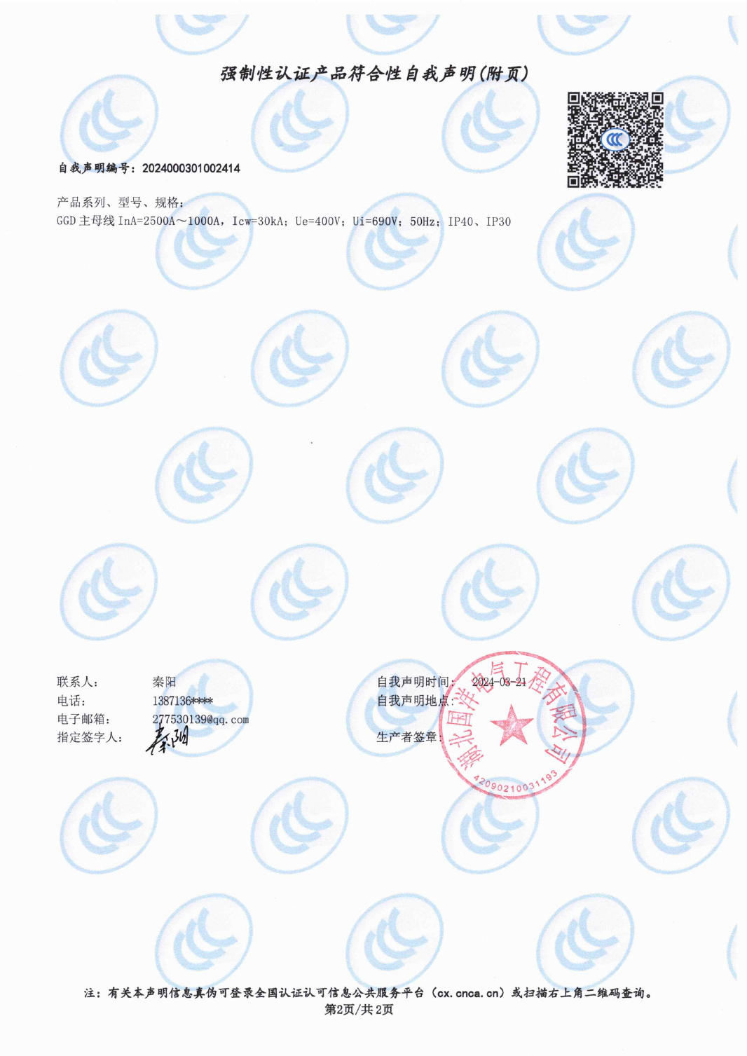 强制性认证产品符合性自我声明