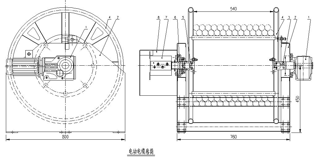 GYCDJ 系列电动电缆卷筒是电动机将动力传至直交轴齿轮减速箱减速放大后的扭矩驱动电缆卷筒旋转收放岸电缆。通过电机反转放电缆。