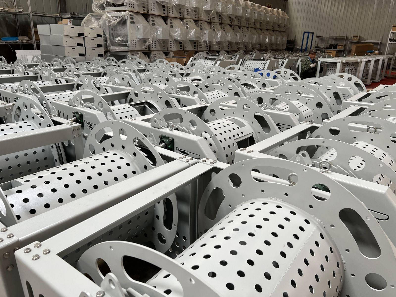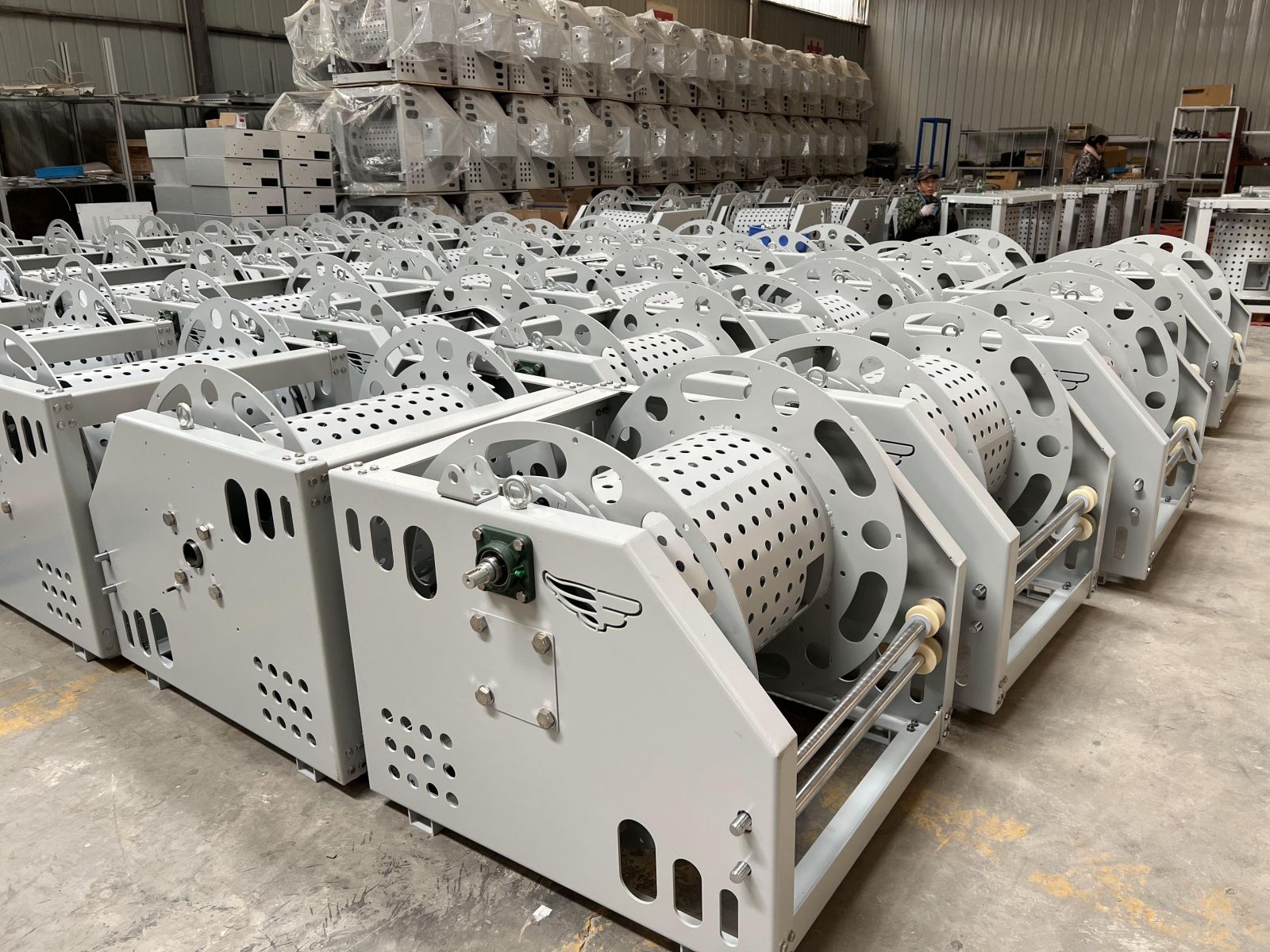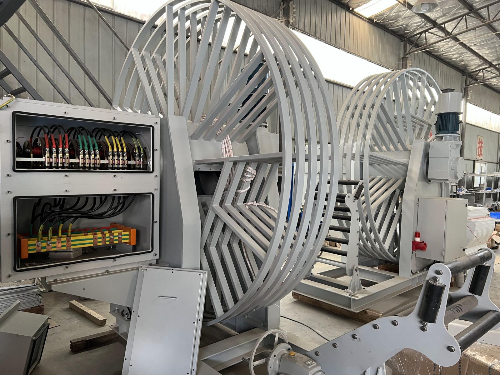 收放缆采用手动按钮控制。控制箱安装在电缆卷筒本体上,可以通过人工在卷筒旁进行收放电缆控制。还设有遥控按钮,可以安放在船舷侧或其他合适的地方进行收放电缆控制。