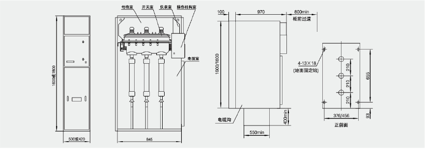 小室包含操作机构和机构联锁以及位置指示、辅助接点、脱扣线圈、带电显示器和联锁。